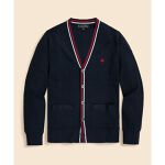 秋口の装いのご提案です。 トップス着用のカーディガンはスーピマコットン生地の通年着用可能なアイテムです。 特徴的な前身頃のラインにあわせ、インナーには同じく白×赤×青の配色を施したオックスフォードシャツを着用。 掲載商品以外は私物です。