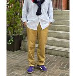 今回は1枚でざっくり着用しましたが、ラグビーシャツの下にオックスフォードシャツを着用したコーディネートもオススメです。