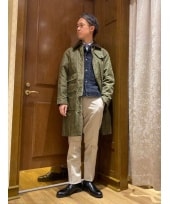 一見シンプルなミリタリージャケットながら、所々にあしらわれたヘリンボーン柄ツイード生地が無骨さを和らげてくれます。