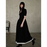 構築的なシルエットがポイントのニットワンピース