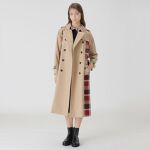 身頃サイドに配したクレストブリッジチェックがポイントのトレンチコートです。主張しすぎないエポーレットやカーブを描くガンフラップ、水牛風ボタン等、こだわりの詰まった一着です。襟裏にもクレストブリッジチェックをあしらいました。ウエストベルトには落ち止めループが付いています。