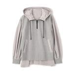 リラックスした着心地でデイリーに活躍するフードパーカー。 前身頃はハリ感のあるポンチ素材、袖と後身頃はタフタ素材で仕立てられたドッキングデザインです。カジュアルになりすぎないきれいめ素材のパーカーは大人のカジュアルコーディネートにおすすめです。