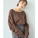 袖にたっぷりタックを入れてボリュームを持たせたスウェットと、ピンストライプのワイドパンツを合わせた秋のカジュアルコーデ。旬のブラウンが柔らかな印象で、ゆったりシルエットがこなれた雰囲気を演出します。