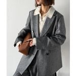 シックなヘリンボーン素材を活かした、3段ボタンダブルジャケット。 程よくゆとりのあるシルエットで、羽織るだけでモードな雰囲気に。 同素材のパンツと合わせれば、秋冬に映える上品なセットアップスタイルが完成します。