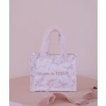 【ピンクマニアフリルスクエアトートSバッグ】リボン柄にチュール素材のバレエコアテイストのデザインで、トレンド感たっぷりのアイテムです♪長財布や500mlのペットボトルも収納可能なサイズ感!◎