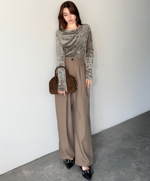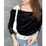 デコルテが綺麗に見えるワンオフショルが、大人の色気をさりげなく演出。 身体のラインを拾いすぎないドレープで気になる部分をふんわりカバーし、華奢見えも叶えます。 ほどよい光沢感とクラッシュベロアの独特なシワ感が、立体的で表情豊かな高見え素材。