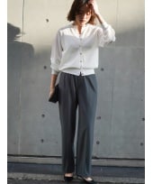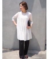 やや短めの丈感が、ワイドパンツとのバランス◎。 インナーを透けさせたレイヤードで奥行きのあるスタイルに。