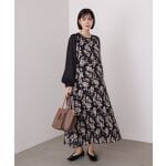 ふんわり花柄ワンピにグレーのファーベスト 秋の風を感じる、しとやかで優しいレイヤードスタイル。