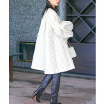 優美に広がるAラインシルエットがラグジュアリーなキルティングコート 歩く度にふわりとゆれるたっぷりフレアのボリューム感と、構築的なバルーンスリーブが印象的。 格子柄のキルティングで上品に着ていただけます。