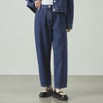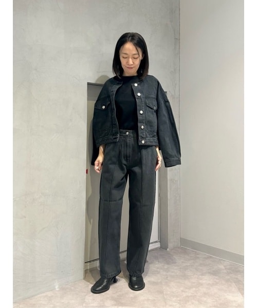 上下で合わせるとカジュアルながらも大人モードな印象に仕上がります。見た目よりも柔らかく、着心地が良い素材です。ブルゾンはゆったりしていて、ボリュームのある袖がポイント。ノーカラーなので襟付きのアイテムとも相性が◎です。パンツは大胆なタックとステッチが脚をきれいにみせてくれます。