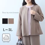 ノーカラーのペプラム風ジャケットとアンクル丈のワイドパンツのセットアップは、エレガントでシンプルな印象。ストレスフリーなカットジョーゼット生地を使用し、快適な着心地を実現します。キレイめなデザインで、ビジネスシーンにも最適。大人の魅力を引き立てるスタイルです。
