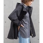 高めの襟が小顔効果を演出し、こなれ感のある印象に。 ワイドデニムに合わせてラフでこなれた印象に。