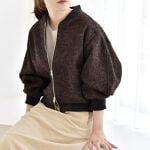 普段サイズ:36 ツイードブルゾンにデニムとロゴトップスを合わせたカジュアルなスタイル。