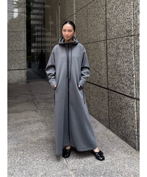 ロング丈でカジュアルになり過ぎないフーディーワンピース。 ハリ感のあるボンディング素材を使用しており、綺麗なシルエットで着用いただけます。 サンプル着用で丈は+3cm