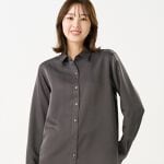 きれいめコーデに使えるサテン地のシャツ。 シンプルなデザインですが、サテン素材の光沢感と生地感がお洒落に見せてくれる1枚です。 柔らかい生地なので、インしてもごわつきはありません。 丈も長めなのでベストやニットとのレイヤードもおすすめです◎。