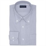 無地のように見えるヘアラインストライプはスーツやネクタイを同じ柄で組み合わせてもスッキリした印象になり◎。 ボタンもシンプルな仕様で、何枚持っていても困らないシャツです。