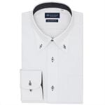 細かい市松模様とくすみ感ある色合いの組み合わせはとてもモダンな雰囲気が現れ、控えめさが重要と言われているビジネスコーデにとても相性がいいシャツです。