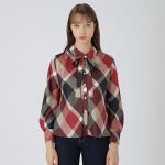 クレストブリッジチェック柄のサテン素材を使用したブラウスです。首元の大きめリボンがポイントです。短かすぎない丈感とベーシックな形でボトムスを選ばず、きれいめスタイル、カジュアルスタイルはもちろん、羽織りアイテムとしても活躍します。首元のリボンは取り外し可能です。