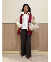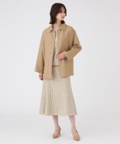 こんにちは。 バイカラーニットカーディガンはコンパクト過ぎずボタンを閉めて一枚着でも◎ インナーのニットは袖がふんわりシアーでカーディガンと重ねて着てももたつかず着ていただけます。 台型シルエットのスカートはタックがあり腰回りはスッキリ見えます。