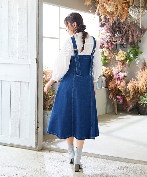 【伸縮性◎】フレアデニムジャンパースカート