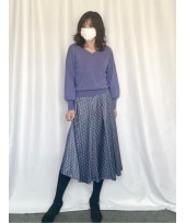 幾何柄タックフレアースカート/洗える
