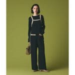 バイカラーがポイントのサロペット。ワイドなシルエットでゆったり着ることができますが、腰のリボンでシルエットの調整ができます。