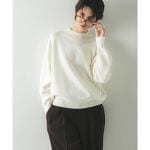 【トップス】 コットンカシミヤで肌触りがとても気持ち良いスウェットニット。 カジュアルなイメージのグレーですが、パール合わせで上品にまとめました!