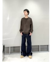 コラージュと写真を組み合わせたアートワークが目を惹くプルオーバーは、現代コラージュアーティスト吉田昌平氏とのコラボレーションアイテム。オイル調カーゴパンツと合わせて動きやすいスタイリングに。