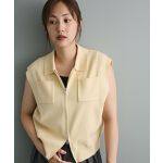 【着用サイズ ベスト:F パンツ:F】フロントジップと胸ポケットがアクセントになったジップベストは、一枚着としてもレイヤードの仕上げとしても活躍します♪コンパクトな丈感でバランスが取りやすく、ボリュームがあるボトムにも合わせやすいです。