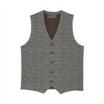 シャツ・ジレは暖かみのある色を選び、Vゾーンは対比色であるブルータイを合わせて顔まわりをスッキリさせたスタイリングです☆