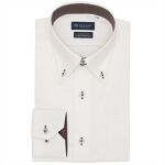 コットン100%のなめらかな生地感が特徴のシャツは、ドゥエボットーニ(台襟に2つボタン)や角切りカフスとドレッシーな仕様に。