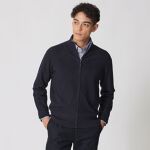 【セーター】ダイヤ柄の編み地が特徴的なフルジップセーターです。梳毛糸を使用した編み地で、高級感のある光沢感と、肌触りの良さが心地いい素材です。【シャツ】イゲージの糸を使用し軽く仕上がっています。程よいストレッチにより着用のストレスが軽減され、着心地の良さを実現しました。