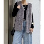 毛足の長めのフェイクファーが、存在感たっぷりのベスト。 羽織るだけで季節感のあるスタイルに仕上がり、Tシャツやニット、ワンピースに重ねてもバランスよく決まります。 スウェットに羽織ることで程よくカジュアルダウン♪