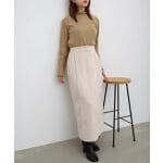 トップス?BEIGE(クルーネック) スカート?IVORY-A(フレア) バッグ?BROWN