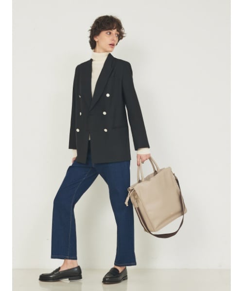 カラ―:ベージュ ジャケット×デニムの大人カジュアルスタイルにベージュのスクエアバッグをプラス。 取り外し可能なショルダーベルト付きで、ハンドバッグとしてもショルダーバッグとしてもオンオフ活躍する2WAY仕様。