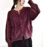 普段サイズ:36 骨格:ウェーブ パーソナルカラー:ブルべ冬 ワインカラーのニットカーディガンをメインに、ボトムスや小物は黒で大人っぽくまとめました。