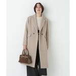 今年のアウターの中で一番しっかりとした厚みのコートです。見た目から伝わる上質な素材感は、羽織るだけでスタイリングを格上げしてくれます。 程よくすっきりとした印象ですが、ミドルゲージのニットの上にも羽織ることができるサイズ感です。