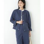肌寒くなってきたこの時期にぴったりな素材感のブルゾンです。とても軽い着心地でストレッチもきいているので動きやすさも◎156cmで腰下の着丈感でした。 今回はパンツ合わせでしたが、ワンピースやスカートの上にさっと羽織るのも素敵だと思います◎