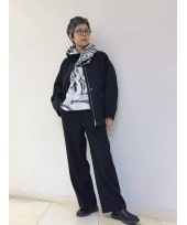 アニマルの小物で遊び心のあるお出かけ着。ノーカラーの気軽に羽織れるコーディガンは裏地なし、何にでも合わせやすいミディアム丈。ボトムはストレッチの効いたポンチ素材のワイドパンツを合わせました。 保温性、吸湿発熱を兼ね備えた秋冬に必須の1着です。