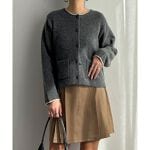 ポケット付きのショート丈のカーディガン。 ネックと袖の配色デザインがポイント。 すっきりとしたショート丈で、ハイウエストのボトムスとも相性◎ カラバリ豊富でお色違いで揃えるのもオススメです。