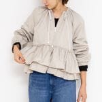 <マリリンムーン スパイラルタフタラッフルブルゾン> ・スタイルアップしてくれるラッフルバランスが嬉しい一着