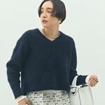 ヘアリーのニットを今年らしく着るには、レースブラウスのレイヤードがオススメ! 裾から少し覗かせてオシャレ見え!