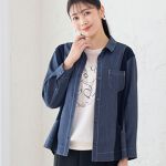 【大きいサイズ】異素材使いがおしゃれなGジャンにフレアスカートを合わせた甘カジュアルな着こなし