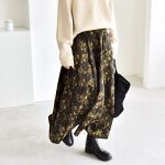 普段サイズ:36 骨格:ウェーブ パーソナルカラー:イエベ春 黒ニットに華やかなフレアスカートを合わせた大人フェミニンなコーデ。