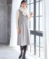 【大きいサイズ】暖か素材を使ったチュニック&パンツなら寒い日のお出かけも安心です。ヒョウ柄のマフラーをアクセントにすればお洒落感もアップ!