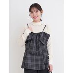 存在感たっぷりの立体リボンがコーデの主役! インナーにワインレッドのTシャツを合わせると、一気に秋らしい雰囲気になります^_^ バストが大きめの方でも楽に着脱できるので、気軽に取り入れやすいアイテムです♪