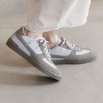 卑弥呼のコートソールスニーカー。異素材のコンビがお洒落で、大人のカジュアルスタイルに。通勤〜お出かけまで幅広く活躍。