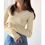 【2025AW新作】デコルテラインで魅せる♪カーヴィーネックリブニット(長袖)