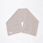 ツイードミルのポケット付きのストールをシンプルにかけたリラックススタイル。