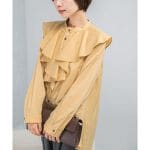 上品な印象のフリルブラウス ブラックはいざ!という時にも大活躍なので、季節毎に持っておきたい所◎ レザーのスカートはホワイトを選ぶと重すぎず、新鮮な印象に◎◎